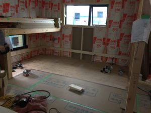 現在、大工さんによる工事が進んでいます。
