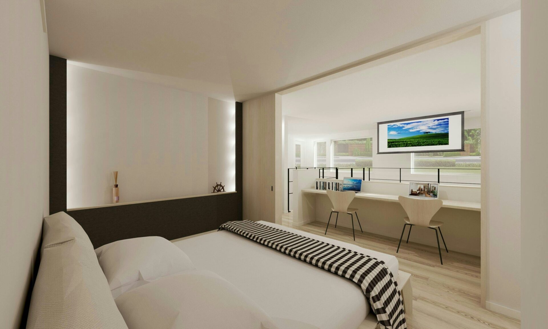 寝室でくつろぎながら映画や映像を楽しめるように配置されていて、