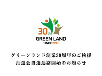 グリーンランド創業30周年のご挨拶・抽選会当選連絡開始のお知らせ