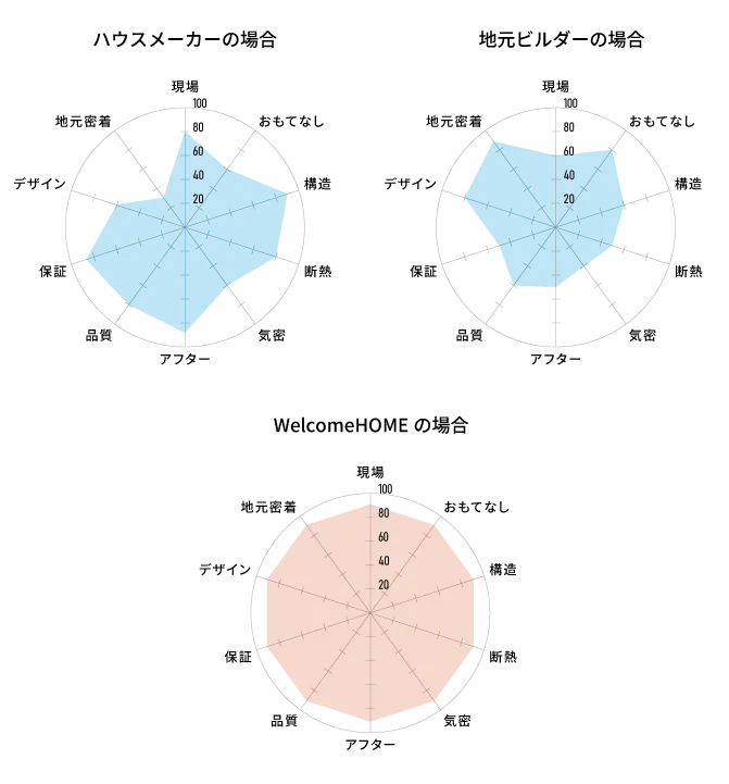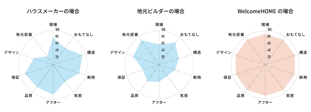 わたしたちは、どれかひとつに特化するのではなく、家づくりに必要なすべての要素をバランスよく満たすことを