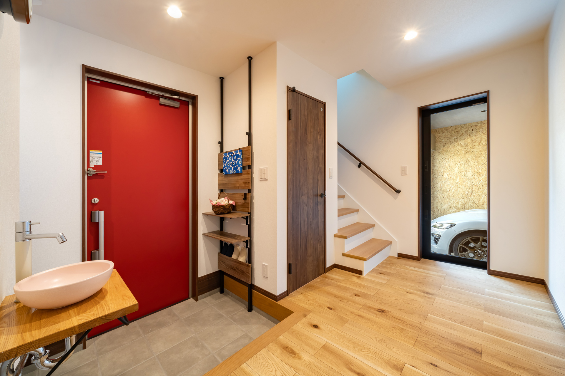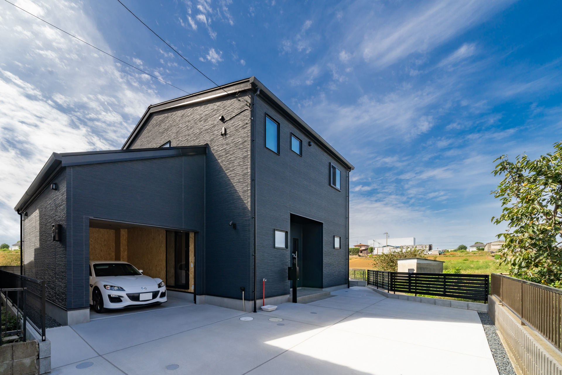 お施主様は「ガレージのある暮らし」に惹かれて、 王子台モデルハウスにご来場いただいたのがきっかけで家づくりをスタートしました。 土地探しもお手伝いさせていただきました。